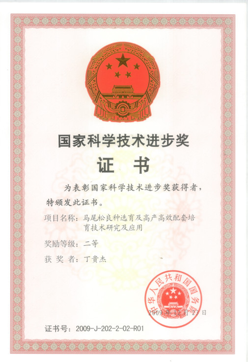| 1 | 马尾松良种选育及高产高效配套培育技术研究 | 国家科技进步二等奖 | 2009.12 | 国务院 | 丁贵杰 周运超 谢双喜 夏玉芳 | 主持 |